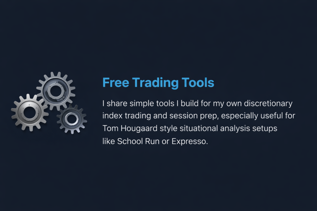 I share simple tools I build for my own discretionary index trading and session prep, especially useful for Tom Hougaard style situational analysis setups like School Run or Expresso.